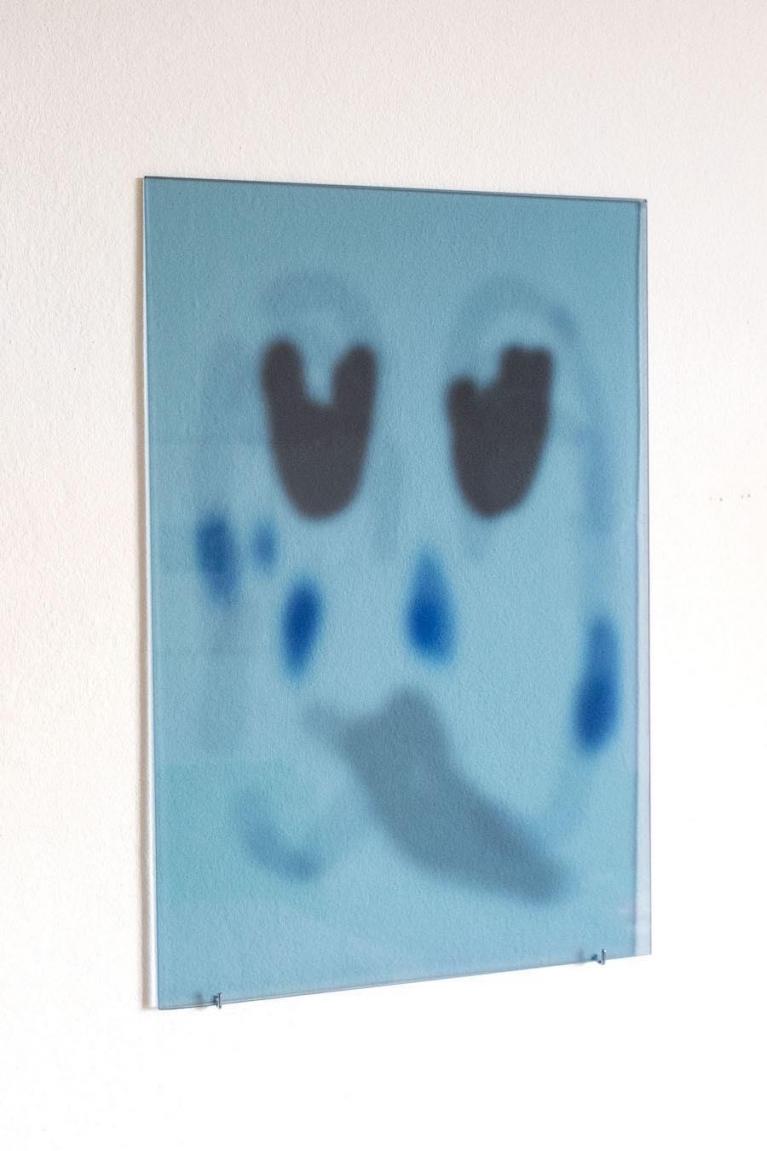 Clean (2021) di Claudia Petraroli è un’immagine monocroma azzurra, attraversata da guizzi di rapidi segni chiari e da altri più scuri, testimonianza visiva dell'azione di post-produzione digitale sottratta da alcune fotografie di prodotti ecommerce. Le pennellate provengono da due maschere di regolazione del software digitale e appaiono isolate dalle immagini delle cose a cui appartengono. I tratti, altrimenti invisibili, emergono in superficie in equilibrio dialettico a formare una composizione astratta.