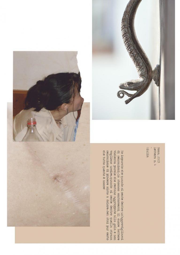 I Made Them Run Away (2017-2019) di Martina Zanin è una storia a più livelli che intreccia fotografia, immagini di archivio e testi scritti dalla madre dell’artista. Raccoglie ricordi del passato e sentimenti presenti per riflettere sulle dinamiche delle relazioni – il bisogno di attenzione, le aspettative che causano disillusione, insicurezza e giudizio. Spostandosi tra i diversi punti di vista, Zanin descrive il ricorrente complicato rapporto tra lei, sua madre e l’”uomo”, non costante, per lo più rappresentato come un’assenza all’interno del lavoro. Fantasticando su un uomo che non è mai riuscita ad avere, la madre dell’artista scrive i suoi pensieri e desideri all’interno di un diario intitolato “Lettere ad un uomo mai avuto”. Gli scritti poetici, si scontrano con le fotografie di famiglia strappate, delle quali la madre ha conservato solamente la sua figura, o quella della figlia, creando degli oggetti saturi di rabbia e solitudine. Ogni altra foto è da intendere come la ricostruzione e l’espressione di emozioni e sensazioni passate venute a galla nel presente, dando spazio a quei sentimenti che spesso sono negati alle ragazze, e alle donne, come la rabbia, il disgusto, il dolore e il potere.