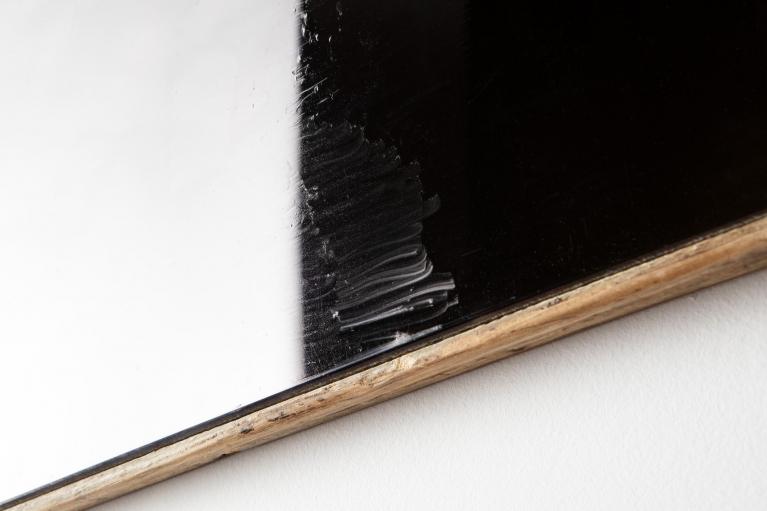 Giovanna Repetto ha realizzato alcune opere costituite da specchi in cui le immagini – che si sono accumulate invisibilmente nel corso degli anni – sono state chiuse con un pennarello indelebile nero. Il lavoro è parte di una ricerca work-in-progress sullo spazio dell’immagine e sull’immagine dello spazio. L’azione consiste nell’oscurare superfici riflettenti attraverso l’inchiostro indelebile andando a chiuderne il tempo di posa. I perimetri di queste superfici diventano archivi di immagini non manipolabili.