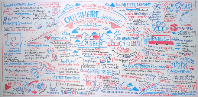 Le pratiche di consumo collaborativo (collaborative consumption) – più comunemente note come sharing economy – consistono nella condivisione di infrastrutture, beni e strumenti (per esempio piattaforme online per la condivisione peer-to-peer di spazi di lavoro, attrezzi, automobili ecc). Quando i due domini della comunità globale dell'open design che produce beni comuni materiali e immateriali e della comunità degli imprenditori etici e innovatori sociali che producono beni materiali attraverso mezzi di produzione distribuiti si fondono, accade sempre qualcosa di interessante e di positivo.. Il mio grande sogno è che gli attori delle economie no profit (cooperative, sociali e solidali) scoprano le pratiche della produzione peer-to -peer per un sistema cooperativo basato su pratiche open source.