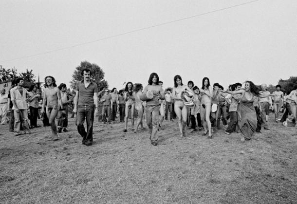 Negli anni Settanta l’immagine era dappertutto: negli studi degli artisti, nelle gallerie, lungo le strade, nei palazzi e nelle vie, dentro le sedi dei partiti o dei sindacati, sui muri, nei giornali, dentro gli obiettivi dei fotografi. Forse si può cominciare proprio da qui per parlare di “Addio anni 70”, la mostra curata da Francesco Bonami e Paola Nicolin, dedicata alla realtà artistica milanese del decennio, dalle foto di Carla Cerati, che coglie la vita mondana ma anche i manicomi, di Gianni Berengo Gardin che descrive case di ringhiera, cortili e piazze, di Cesare Colombo che segue i cortei e fissa gli attivisti del Movimento Studentesco, di Maria Mulas che distorce con un obiettivo apposito i corpi e i volti della intellighenzia milanese al Pac durante l’inaugurazione di una mostra, di Lelli e Masotti (uno dei lavori più poetici dell’intera esposizione) che fissano la performance di John Cage al Lirico, di Ugo Mulas che memorizza la strabocchevole piazza del Duomo ricolma di uomini e donne per il funerale dei morti di Piazza Fontana, di Gabriele Basilico che ritrae la folla alla Festa del Proletariato giovanile nel 1976.