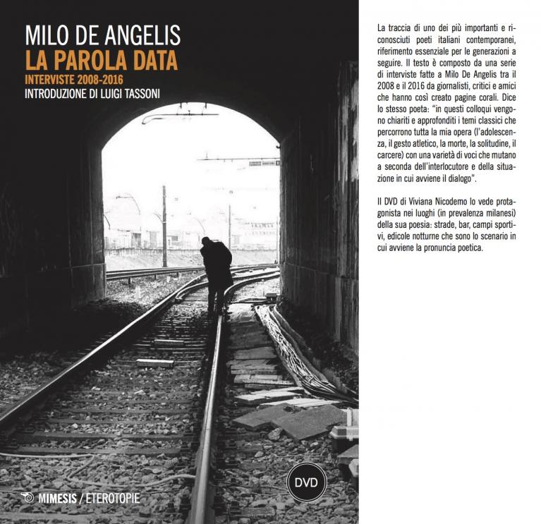La parola data, interviste a Milo De Angelis 2008-2016, con DVD di Viviana Nicodemo e prefazione di Luigi Tassoni, ed. Mimesis 2017.