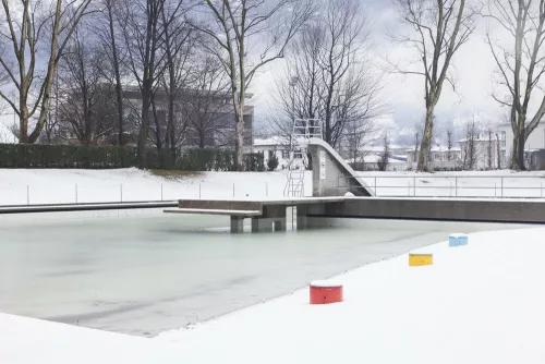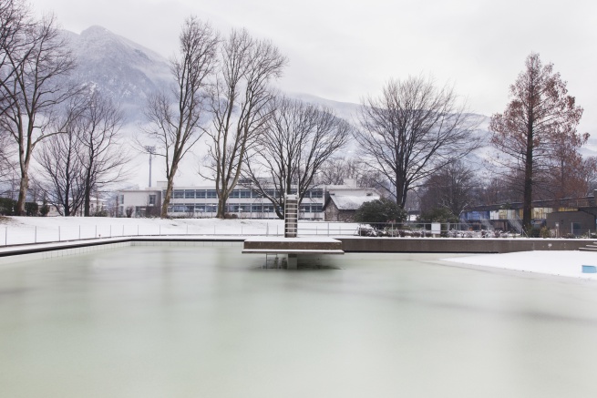 Quando torniamo in studio scorriamo insieme i suoi progetti di oltre cinquant’anni di professione. Evidente e dichiarata la discendenza da Le Corbusier, che per lui è un maestro di architettura e di libertà intellettuale, oltre che un ispiratore di quella che per Galfetti è l’Architettura: «Il progetto per la costruzione dello spazio per l’uomo». Sfogliando il catalogo delle sue opere, colpiscono immediatamente le case dei primi anni sessanta in un contesto ancora tradizionale, con i committenti che vivono all’inizio di un’epoca di prosperità che appare senza fine. Poi scuole e asili, dove costante è il rapporto con il territorio circostante e le sue caratteristiche naturali. Ci soffermiamo sul suo capolavoro (in collaborazione): i Bagni pubblici di Bellinzona (1967), una lunga promenade che racconta anche delle condizioni sociali del Cantone, con la grande vasca per i non nuotatori che si immagina scendessero dalle valli nelle calde giornate estive.