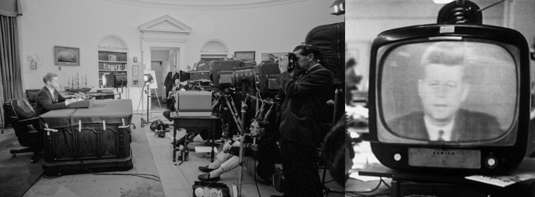 Con meno entusiasmo sarà ricevuto il discorso televisivo alla nazione tenuto il 22 ottobre 1962, alle sette del pomeriggio, dopo la messa in onda di una serie di vecchie repliche dell’Ed Sullivan Show e di I love Lucy, in cui avrebbe annunciato agli americani – salutati con un: Good evening my fellow citizens – e al mondo, che nove giorni prima «si sono avute le prove inoppugnabili che una serie di rampe per missili offensivi è in corso di allestimento nell’isola di Cuba. Lo scopo di queste basi non può essere altro che quello di creare una forza d’urto nucleare diretta contro l’emisfero occidentale».