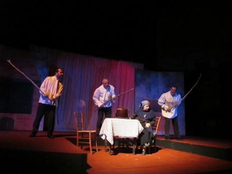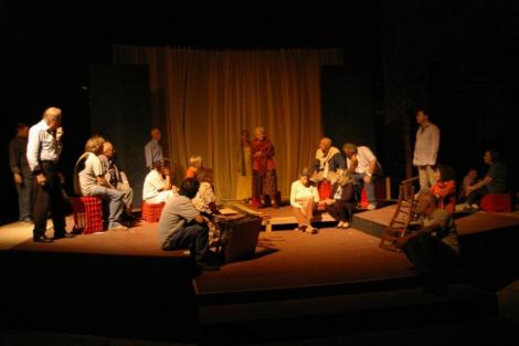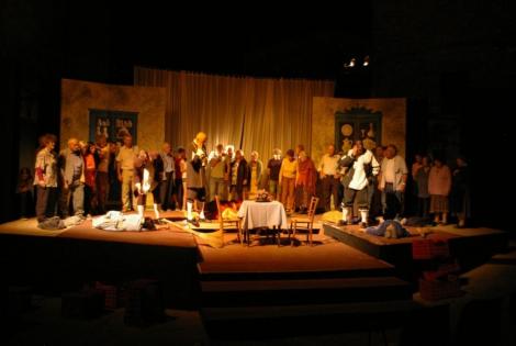 Il novello Campriano, spinto dal bisogno, farà di necessità virtù, accettando le proposte dei tre delinquenti (sempre più al ribasso), ma frodandoli, a sua volta, mettendo sotto uno strato superficiale di buon miele dello sterco. La storia prosegue con beffe successive agli speziali che vanno da lui a protestare e che Campriano attrae con oggetti “miracolosi” sempre più mirabolanti, fino alla trombetta che resuscita i morti: i tre la proveranno sulle mogli, dopo averle debitamente uccise, ma esse non ne vorranno sapere di tornare a vivere. La storia prosegue in modo divertente e indignato. Lo spettatore ne accetta le ingenuità, i (non troppi quest’anno) momenti predicatori, trasportato dalla passione dei quasi sempre convincenti attori, dalla loro lingua carica di umori e di immagini che figurano una domestica confidenza col mondo. Soprattutto si trova davanti a un teatro diretto, forse poco raffinato formalmente ma efficace, che dà voce a ansie comuni senza banalizzare.