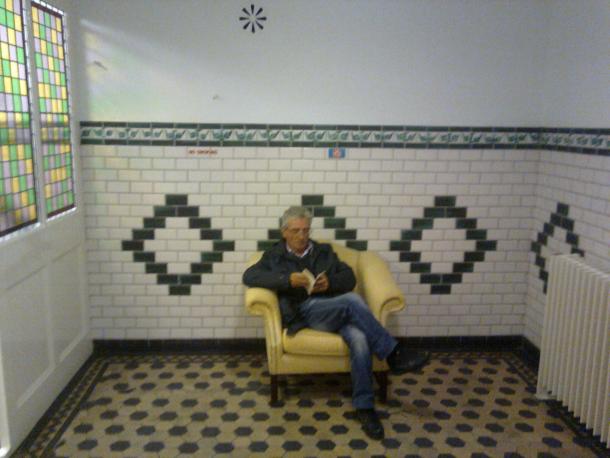 Io da qui a mani vuote non me ne vado!, ho pensato allora. Ma non mi riferivo alle cartoline. E così sono tornato indietro, ho ripercorso quasi tutte le sale, approfittandone per scattare altre foto malandrine (e maldestre) e sono sceso nel sottosuolo, alle toilette. Ho percorso i corridoi deserti e sono arrivato a due salottini che introducevano ai bagni veri e propri, non belli e invitanti alla lettura come quelli della Biblioteca nazionale di Dublino, ma molto puliti e decorosi, a modo loro eleganti, e lì, sotto gli occhi esterrefatti di un inserviente indiano, saltellando qua e là come un indemoniato, mi sono sfogato a fotografare a raffica tutto il fotografabile.