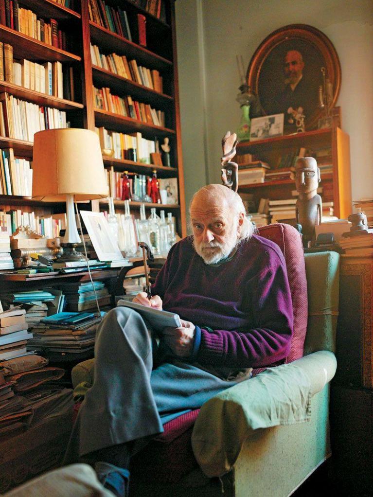Più tardi fuggì verso la Turchia, poi l’Egitto, e in Inghilterra, dove abitò 10 anni e dove si associò al circolo dei poeti modernisti. Quel pomeriggio, evoca come ama fare, cosciente o no dell’effetto che provoca, i nomi di T.S. Eliot che ha frequentato a Londra, o di Lawrence Durrell e di Henry Miller, incontrati in Grecia, o di altri ancora, come quelli di W. H. Auden o di Dylan Thomas. Resto pietrificato davanti a questo signore anziano, così presente al mondo, i cui ricordi sono quelli di un museo vivente.