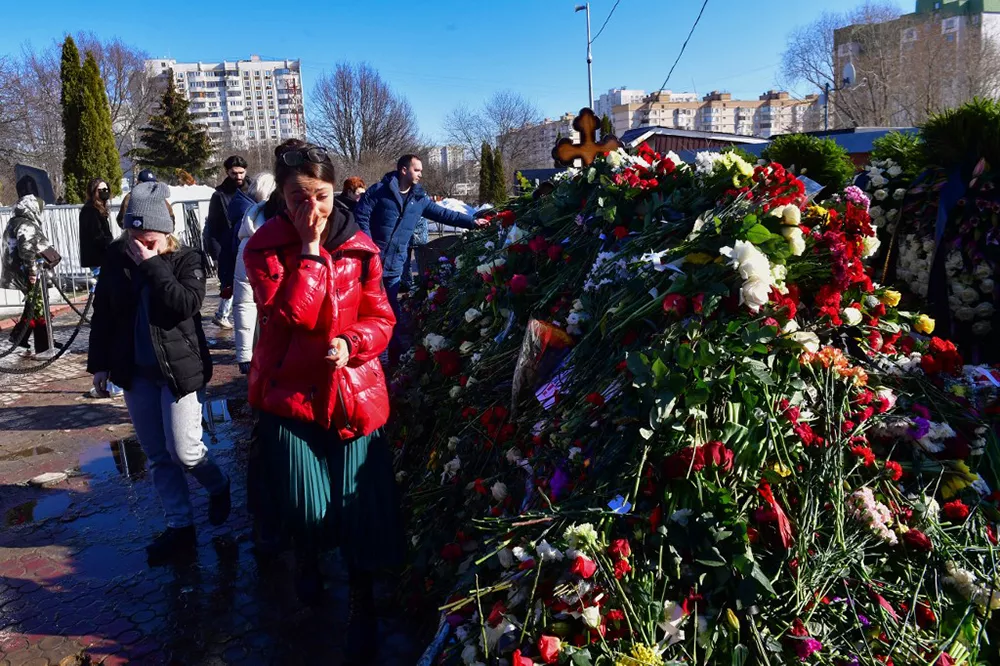 Nel fatidico 1° marzo 2024 (il giorno precedente, in cui Putin aveva rivolto un discorso alle camere unificate, non si erano “trovati becchini disponibili per scavare la fossa”) si sarebbe andati molto oltre. Migliaia di persone si riversarono nell’anonima periferia sud di Mosca, colmando strade, marciapiedi e cortili adiacenti alla chiesa della Madre di Dio in cui si sarebbe svolta la cerimonia, visto che in tutta la città non era stata trovata una sala in cui allestire la camera ardente per permettere alle persone di rendere l’ultimo saluto al politico che era consapevolmente andato incontro alla morte.