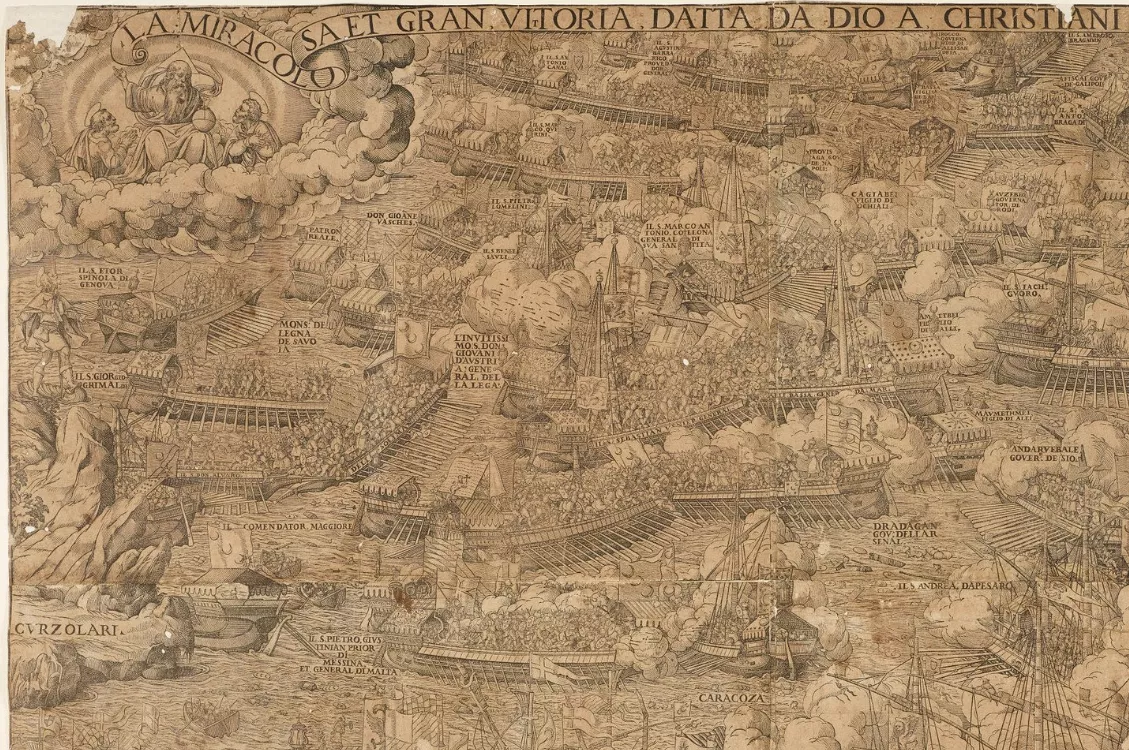 C’è un altro 7 ottobre, particolarmente caro ai teorici del cosiddetto scontro di civiltà. Il 7 ottobre 1571, la battaglia di Lepanto. Usiamo anche oggi il nome italiano della città greca di Naupaktos, ma in realtà lo scontro avvenne più a ovest, all’imboccatura del golfo di Patrasso. La battaglia era stata preceduta da una straordinaria mobilitazione dell’opinione pubblica verso quella che stava assumendo i contorni di una guerra religiosa: già mesi prima, in alcune città si erano svolti festeggiamenti alla proclamazione della Lega Santa tra papa Pio V, la Spagna e Venezia.