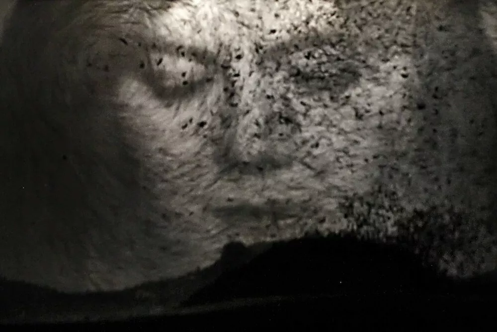 Dopo il vento cosmico, dopo le Eve scacciate e penitenti, si forma lentamente, in una pioggia di cenere vulcanica, un volto. Sembra all’inizio quello di un Cristo con gli occhi chiusi, rinato dopo l’esplosione finale di Sul concetto di volto nel Figlio di Dio. Prende a poco a poco sempre più le sembianze di un giovanetto o di una donna liberty. È l’immagine di una prostituta fotografata tra fine ottocento e primi novecento. In fondo all’esplosione sta il suo volto. Dolce, pacifico, cristologico, infinitamente paziente, ricomposto. In sottofondo, lo strazio e l’amore senza soluzione del Tristan und Isolde di Wagner.