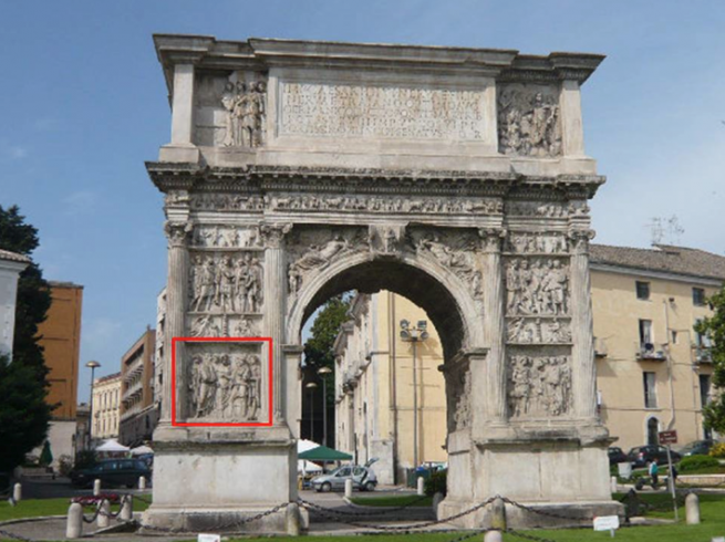 Nota: I rilievi dell’arco sono oggi molto danneggiati dalle intemperie e dall’incuria. Ci si augura che vengano presto restaurati e ricoverati in un luogo chiuso, sostituiti, come è stato fatto altrove, da copie.