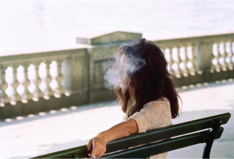 La ragazza che fuma, colta al volo a Parigi nel 1972. Seduta su una panchina emette una nuvoletta biancastra che le copre il viso. Non è nebbia, bensì fumo. La nuvola nasconde e insieme rivela la ragazza; lo scatto di Ghirri è un modo per vederla meglio, molto più che se nel suo ritratto non ci fosse quella nuvoletta.