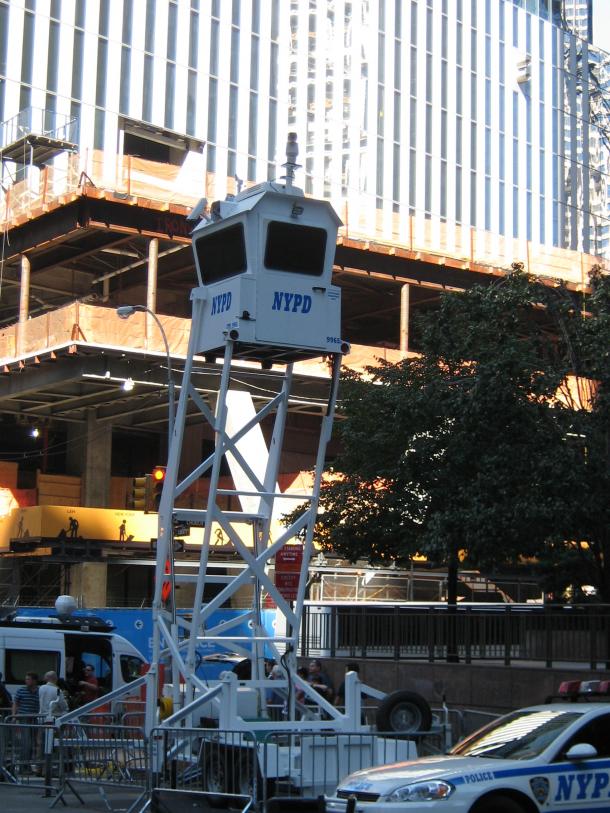 il filosofo marxista Žižek Slavoj”, come ha detto il telegiornale di RAI International, parla ad OccupyWallStreet. Arrivo con la metro a Fulton street, giro sulla Broadway e in cinque minuti sono a Zuccotti Park, ribattezzata Liberty Plaza dal movimento che l’ha occupata il 17 settembre. È la prima volta che ci vengo e mi aspetto che le tre settimane di campeggio libero abbiano ridotto male sia il posto sia gli occupanti. Il primo presagio dell’occupazione è un rullo continuo di tamburi, come è immancabile in queste situazioni che sembrano esercitare una forte attrazione sui percussionisti. La piazza sarà un duecento metri in lungo e cento in largo: al centro un giardino pubblico, sui lati lunghi due stretti controviali occupati uno dai mezzi della polizia di New York, l’altro da televisioni e media vari. I poliziotti hanno anche costruito un torretta di avvistamento, come quelle che ci sono nei campi di prigionia, per la sorveglianza dall’alto.