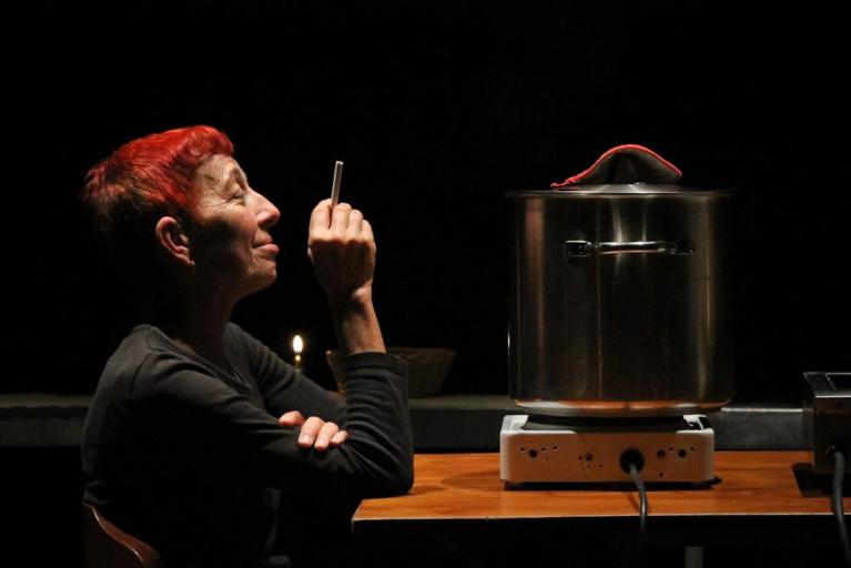 Procedendo in maniera ancora più analitica e concentrandosi stavolta sulle parole pronunciate dagli attori, possiamo spiegare meglio perché “pane” e “petrolio” sono forse più referenti simbolici, che oggetti concreti. Partiamo dalla prima parola. “Pane” è nello spettacolo un riferimento al calore, alla coesione, all’affetto che consente a un gruppo sociale o familiare di sopravvivere alle angherie della vita. Il cibo preparato è dunque il mezzo che permette di radunare gli esseri umani insieme: un «teatro della tavola e dei fornelli», un piccolo mondo dove si mangia per esorcizzare e forse neutralizzare il malessere. I mostri che vengono soprattutto ricordati nel lavoro sono la guerra e la morte, nello specifico quella dei genitori degli attori che, attraverso il racconto del loro passato, fanno la loro apparizione sulla scena e si trovano, per un attimo magico, a salutare di nuovo i loro figli. Mangiare diventa così un atto spirituale per un tramite materiale, vale a dire un modo per scacciare la tristezza e la debolezza.
