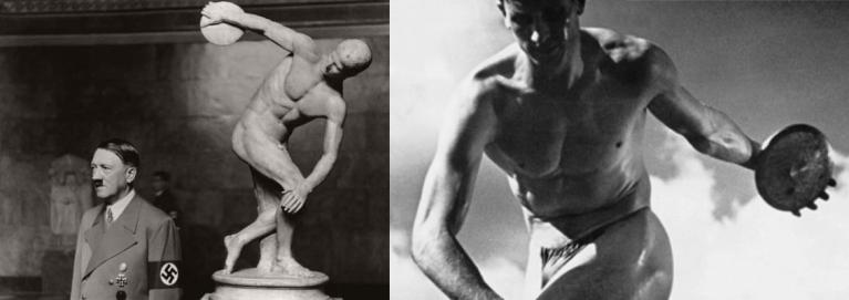Adolf Hitler e il Discobolo Lancellotti alla Glyptothek di Monaco di Baviera nel 1938 / Fotogramma tratto dal film Olympia di Leni Riefenstahl.