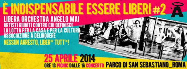 Il 25 aprile ci sarà “è indispensabile essere liberi #2”, una festa al Parco di San Sebastiano, vicino all’Angelo Mai che purtroppo resta ancora sotto sequestro. Sembra che nemmeno il Comune abbia il potere di restituire il centro sociale di cui Roma è rimasta orfana. A sostegno della battaglia per la libertà dell’Angelo Mai e per la continuità abitativa delle due occupazioni è intervenuto anche un appello pensato, scritto e fatto circolare da due compagnie teatrali, Fanny&Alexander (Ravenna) e Ateliersi (Bologna). In poco tempo, ha ricevuto la firma e il sostegno di un incredibile numero di personalità del mondo della cultura. Tra questi Paolo Fresu, Franco Battiato, Elio Germano, Fabrizio Gifuni, Marco Müller. Chiedono alle istituzioni un impegno concreto affinché possano riprendere le attività e la programmazione dell’Angelo Mai Occupato assieme alla bellezza della sua ricerca artistica.