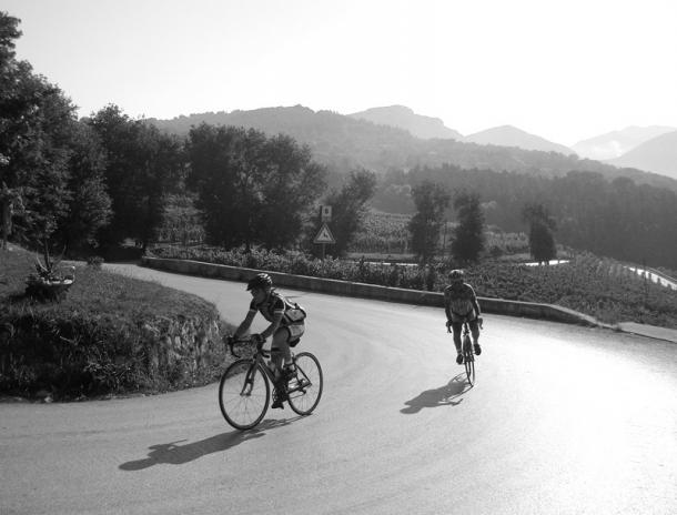 Stamattina, dopo giorni di secca, si esce col gruppo. Il gruppo, poi: ma quale gruppo? Sembriamo superstiti dopo l’impatto con un meteorite. Fino all’anno scorso avevamo uno sponsor che usciva in bici con noi. Non lo sopportava nessuno, e alla fine se n’è andato. Nei mesi successivi, ho capito che niente come l’odio tiene uniti. Quando era tra noi, esisteva una squadra che faceva scudo contro l’estraneo sbruffone, il cafone arricchito. Lui organizzava un giro coi suoi Bravi, noi altri boicottavamo la direzione; e se 60 eravamo, in 60 partivamo. Ma adesso che il nemico è scomparso, il frutto ha perso il nocciolo, il camino la brace, e tutto si è sgranato nelle approssimative spianate del bene. Chi deve fare una cosa, chi deve tornare prima, chi si è creato un sottogruppo di due o tre amici per uscite ad insaputa degli altri. La nostra divisa è ormai diventata una bandiera senza Paese.