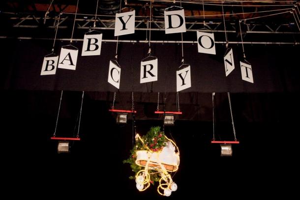 Baby Don’t Cry di Babilonia Teatri è uno spettacolo per l’infanzia duro e lieve, mai sdolcinato. Comincia nel buio, con un pianto inconsolabile, sotto una luce gialla intermittente di soccorso, fra una carrozzina con lucine da luminaria di festa e un albero di natale. Una voce ripete, in incalzante litania: “Non piangere. Non serve a niente. Non vedi che non posso, non posso… Il papà, cosa ti ha detto!… Dai un bacino al tato… alla tata… Questo è pericoloso. Poi piangi, piangi… Io ti devo curare, io ti devo amare… Io…Io… Io…”.