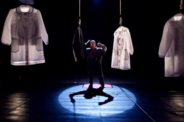 Torno a Baby don’t cry: la forza di questo spettacolo, costruito su interviste a scolari delle elementari di Parma, è mettere alla pari l’adulto e il bambino. Mostrare fragile chi appare incrollabile e con ogni potere. Dimostrare come certe maschere di autorità o semplicemente di sicurezza si basino su paure, su dolori per molti versi simili a quelle dei piccoli. Dei due attori uno è cieco: e mentre attraversa parole e ruoli diversi (in questo teatro non si impersona, si mostra, si riferisce, eppure il risultato emotivo è fortissimo) si rivela abilissimo a dominare lo spazio e fragile, smarrito.