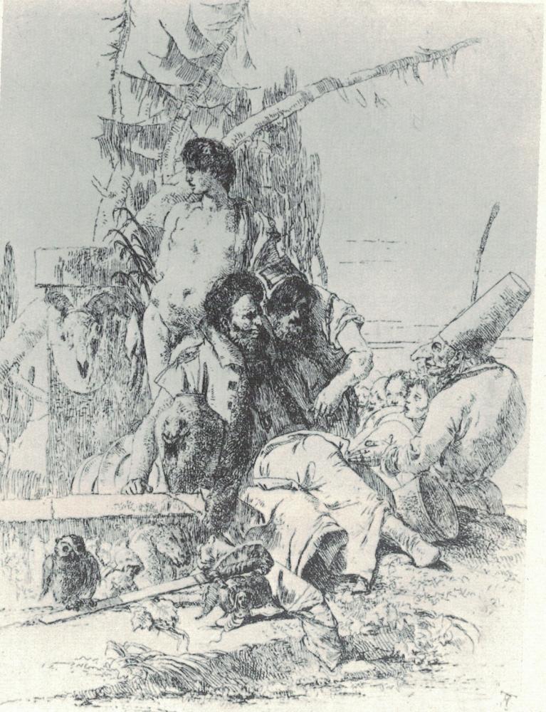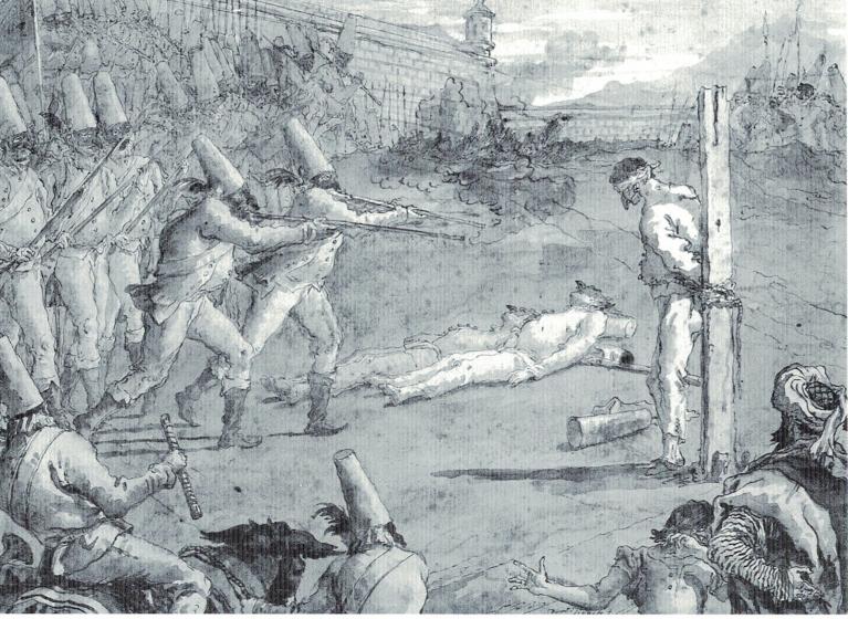 Domenico Tiepolo, La fucilazione di Pulcinella, disegno, collezione privata, Londra.