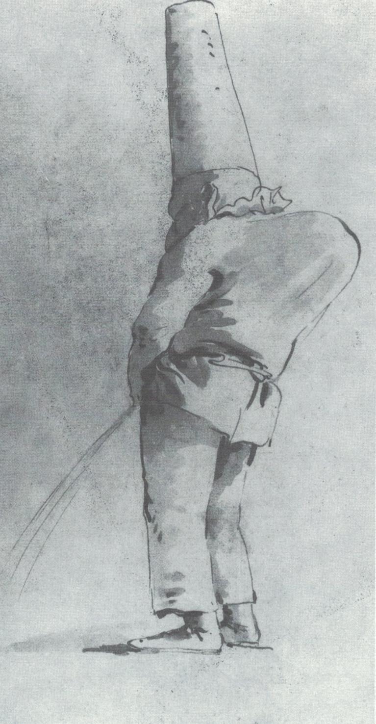 Giambattista Tiepolo, Pulcinella che orina, disegno, già Gallerie Cailleux, Parigi.