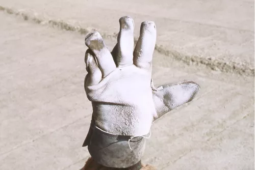 Le foto a colori di Colorland cosa sono? Da quale viaggio esteriore, o interiore saltano fuori? Per capirlo c’è un’immagine presente nella mostra bergamasca, città dove ora Cresci risiede. Forse questa immagine non è la più bella, e forse neppure la più evocativa – le foto di paesaggio presenti nella mostra sono bellissime e riecheggiano, con uno stile tutto proprio, i “maestri” Ghirri e Giacomelli –, ma forse è quella che riesce a fungere da ponte visivo tra il Cresci antropologo della pre-modernità e il Cresci antropologo della post-modernità, fratello ribelle delle neoavanguardie e del concettualismo italiano; una foto come ponte tra l’artista e il fotografo, tra le due identità che convivono in lui. Il guanto operaio è un’immagine realizzata a Matera.
