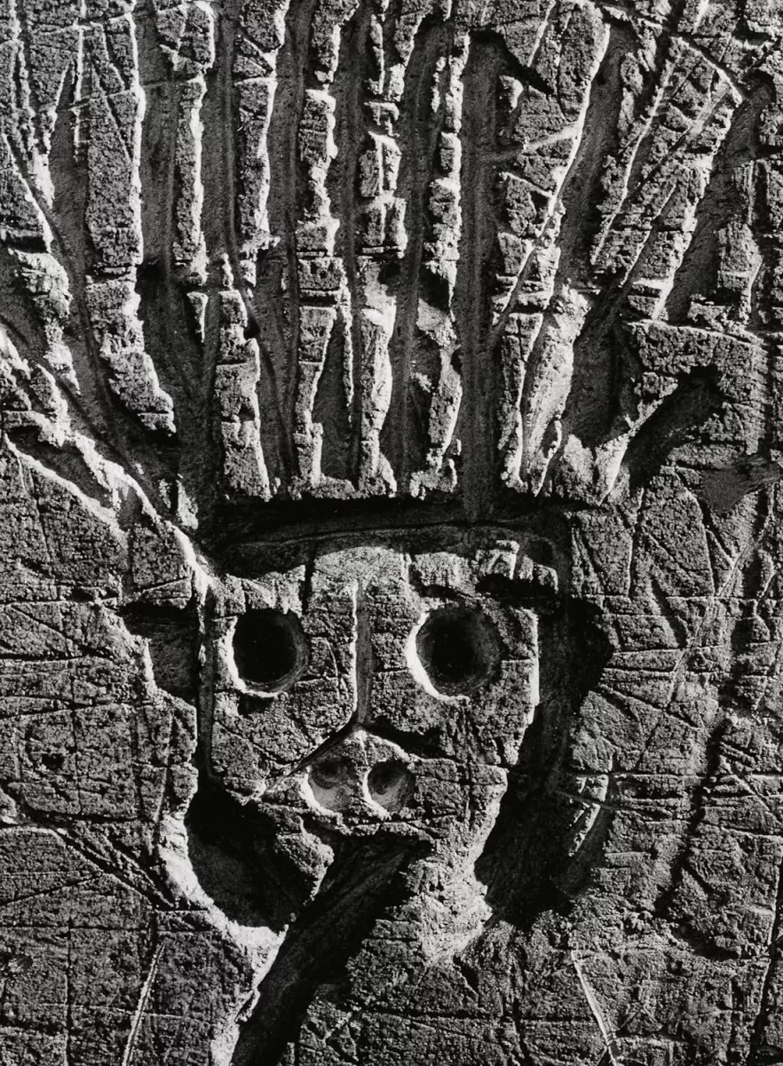 Quello che colpisce in questi graffiti è proprio l’entità del graffio stesso. Per quanto Brassaï incentivasse con un oculato uso delle ombre e del rilievo la profondità degli scavi, alcune delle “immagini primitive” (così le aveva chiamate il fotografo) sono delle vere e proprie incisioni realizzate non con strumenti grafici consueti, i cosiddetti tracciatori, che lasciano un segno sulla superficie del muro, ma scavando la parete medesima. C’è in questi segni una forza appunto brutale. Se la confronto col segno sottile dell’ignoto artista del sottopasso sembrano l’esito di solchi profondi, escavazioni realizzate con oggetti metallici e contundenti. La più nota di queste immagini di Brassaï, battezzata dal fotografo “Il Re Sole”, raffigura un viso umano con al centro due orbite vuote di forma circolare, e due fori più piccoli: il naso; sopra si vede distintamente una sorta di raggiera che si diparte dal capo. Tutto intorno al volto vi sono tracce di altri segni in direzione verticale ed anche obliqua, come se una o più persone avessero graffiato senza una precisa intenzione espressiva la superficie di quella che sembra una pietra (la data della fotografia fissata da Brassaï è: “anni trenta e cinquanta”). Un altro graffito reca come titolo “L’amore” e raffigura un cuore, e sembra, a un primo sguardo, tracciato nel medesimo luogo o su una parete similare. Nel catalogo un testo di Silvia Paoli ricorda come il fotografo ungherese ritornasse a fotografare il medesimo graffito a distanza di anni, annotando su un quaderno i cambiamenti avvenuti, come se si trattasse di un’opera collettiva, oltre che il prodotto dell’azione d’un singolo autore.