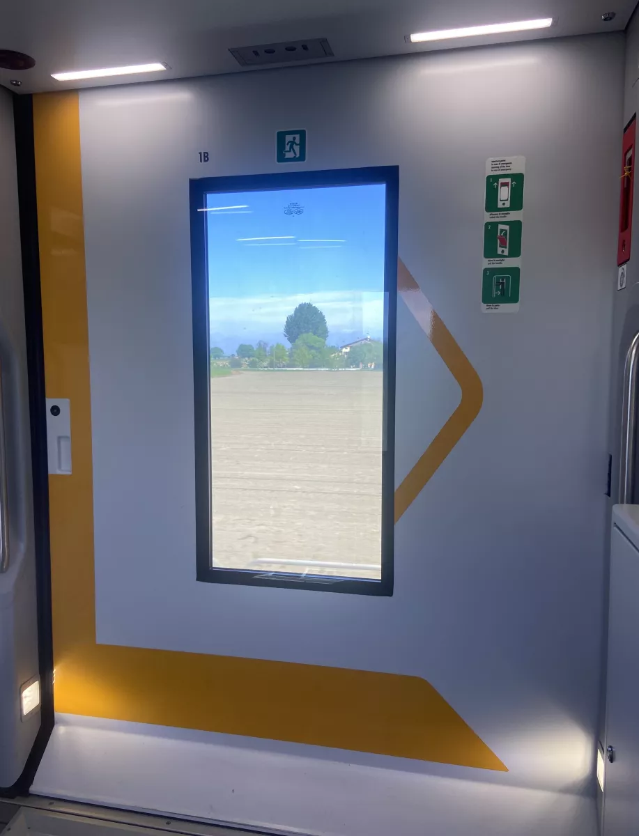Questa immagine, presa dall’interno d’un treno, mostra una portafinestra e dentro il rettangolo una porzione di mondo là fuori: un campo arato, degli alberi intorno a una casa, una porzione di cielo; azzurro e marrone sono le due campiture prevalenti di questo riquadro. Che cos’è una finestra? Un’apertura. Serve ad arieggiare l’ambiente in cui ci troviamo e a guardare fuori. Sembra che la parola sia d’origine etrusca entrata poi nel latino e arrivata sino a noi. La sua etimologia è incerta. Le finestre ci permettono di osservare il mondo. È un quadro quello che si vede? Piuttosto una porzione di realtà incorniciata dal rettangolo nero. Le fotografie, del resto, sono delle finestre, così come i quadri. Giulio Paolini ha detto che guardare un quadro è come stare alla finestra. È vero. E non è altrettanto vero che anche i nostri occhi sono una finestra? Verso la fine del suo libro Palomar Italo Calvino s’interroga su come si fa a guardare qualcosa lasciando da parte l’io. Una domanda inattuale vista l’invasione di io che c’è oggi in ogni sguardo gettato sul mondo. Nel capitolo di quel volume pubblicato nel 1983 lo scrittore sottolinea come di solito si pensa che l’io “sia uno che sta affacciato ai propri occhi come al davanzale di una finestra e guarda il mondo che si distende in tutta la sua vastità lì davanti a lui”. Così ci appare. C’è però una domanda importante. Se là davanti c’è il mondo, di qua cosa c’è? La risposta che si dà Calvino è semplice: “Sempre il mondo: cos’altro volete che ci sia?”. Insomma, “l’io non è altro che la finestra attraverso il quale il mondo guarda il mondo”. Poi aggiunge un aspetto importante: “Per guardare se stesso il mondo ha bisogno degli occhi (e degli occhiali) del signor Palomar”. La fotografia è esattamente questo: uno sguardo che viene da fuori, come scrive Calvino. Non tanto o non solo da dentro – l’introspezione resta pur sempre uno degli aspetti importanti di questa arte –, ma proprio da fuori. Da tempo sappiamo che, non solo noi guardiamo le cose là fuori, ma che le stesse cose ci guardano. L’hanno scritto in tanti, soprattutto poeti, narratori e artisti. Calvino aggiunge una considerazione importante: “è dalla cosa guardata che deve partire la traiettoria che la collega alla cosa che guarda”. Possiamo dire che il paesaggio che c’è dietro questa finestra – i campi, la casa, la vegetazione, il cielo – ci guardano? Che con questo scatto si è fissato lo sguardo del paesaggio su chi guarda? E come è possibile che ci sia davvero là fuori uno sguardo che attende chi guarda? Forse “dalla muta distesa delle cose” parte un segno, un richiamo, un ammicco? In cosa consisterebbe questo cenno d’intesa? Se l’era chiesto anche Montale in una sua poesia, e gli sembrava di averlo percepito, di averne sentito la presenza, per quanto fuggevole. Questa fotografia presa da un treno in corsa è una simile occasione? Sono tutte domande cui è difficile rispondere. Calvino è convinto che prima o poi si possa verificare qualcosa del genere. Una fortunata concidenza: “il mondo vuole guardare ed essere guardato nel medesimo istante” e il signor Palomar si è trovato a passare lì in mezzo. Forse è accaduta la stessa cosa anche in questo scatto. Bisogna essere fortunati perché avvenga? Non è necessario. “Queste cose accadono soltanto quando meno ci s’aspetta”. Come qui. Il mondo guarda il mondo attraverso la finestra d’un treno.