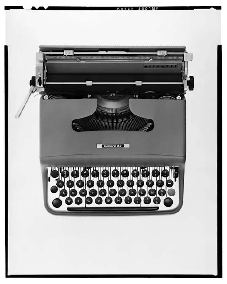 Chi ha scattato questa fotografia è una coppia: Ballo & Ballo, ovvero Aldo Ballo (1928-1994) e Mariarosa Toscani Ballo (1931-2023), marito e moglie. Lei è figlia d’arte, suo padre Fedele Toscani, è stato un famoso fotoreporter in epoca fascista e anche dopo. Aldo ha imparato il mestiere da Mariarosa. Sono stati i più importanti fotografi di design del XX secolo (una professione che prima non esisteva). Perché? Per una semplice ragione: non fotografavano cose, ma oggetti, guardandoli come se fossero persone. Qui, ad esempio, la loro bravura emerge nel mettere in mostra la silhouette della Lettera 22 senza ricorrere alla sagoma laterale, facendo un ritratto frontale, senza ridurla a uno spessore minimo: danno rilievo alle singole parti e nel contempo forniscono un’immagine completa e coerente dell’insieme.