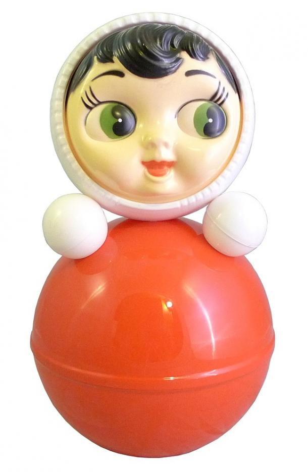 Il pavimento in graniglia arancio e nocciola era gelido e da sotto l’uscio filtrava uno spiffero invernale. Ciononostante me ne stavo seduta infreddolita di fronte a questo strano bambolotto di plastica rigida, dal colore rosso brillante e dai grandi occhi spalancati che era stato da poco regalato a mio fratello di pochi mesi. Non era un bambolotto da coccolare, abbracciare, svestire, vestire, pettinare, era semplicemente formato da due globi di plastica di diverse dimensioni, sovrapposti a formare un corpo e una testa tondeggiati e levigati. L’unica attrattiva alla vista era la lucentezza purpurea dell’abito e del cappuccio e i suoi occhi sognanti, in contrasto con tutto ciò che lo circondava in quel momento; il freddo e la mestizia di una malinconica cucina americana. Ma erano soprattutto il suo movimento e il dolce suono che generava a creare la magia del gioco. Se lo si spingeva in avanti, indietro o di lato, esso si inclinava un poco per poi tornare al punto di partenza con un movimento oscillante, producendo ogni volta uno scampanellio che si andava via via spegnendo. Dlin, dlin, dilin! Dlin, dlin! Dlin!