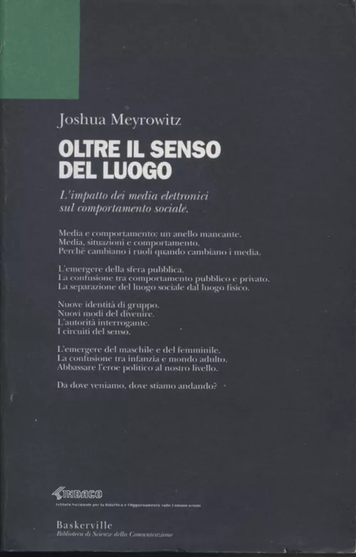 Dobbiamo a Marshall McLuhan l’idea che i media siano in grado di costituire dei veri e propri ambienti immateriali in tutto e per tutto simili a quelli fisici. Nel corso degli ultimi decenni, tale idea si è progressivamente diffusa e ha dato vita a un importante filone di analisi relativo al ruolo sociale esercitato dai media. Tra gli autori che si collocano in questo filone di ricerca, lo statunitense Joshua Meyrowitz dev’essere senz’altro considerato uno dei più significativi. È nato nel 1949 e ha insegnato prevalentemente nel dipartimento di Comunicazione dell’Università del New Hampshire di Durham, pubblicando numerosi saggi relativi agli effetti sociali prodotti dai media. È conosciuto in Italia soprattutto per il volume Oltre il senso del luogo. Come i media elettronici influenzano il comportamento sociale. In tale lavoro, che è uscito nel nostro Paese nel 1993 presso l’editore Baskerville ed è diventato un vero e proprio classico dei media studies, Meyrowitz ha cercato di analizzare come l’apparizione della televisione e dei media elettronici abbia modificato la percezione dello spazio da parte degli esseri umani. Vi ha inoltre sostenuto che, per effetto del ruolo esercitato dai media, nella vita sociale i confini esistenti tra la scena pubblica e il «retroscena» degli individui sono stati progressivamente abbattuti e ha cominciato a svilupparsi un nuovo «spazio intermedio» dove il pubblico e il privato tendono a fondersi.