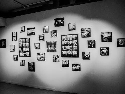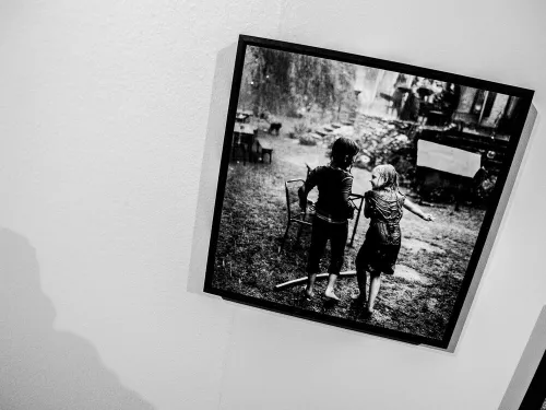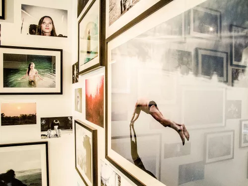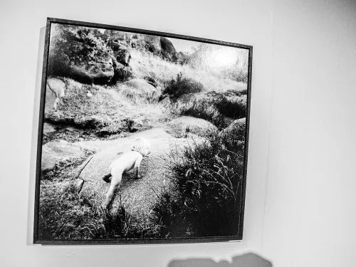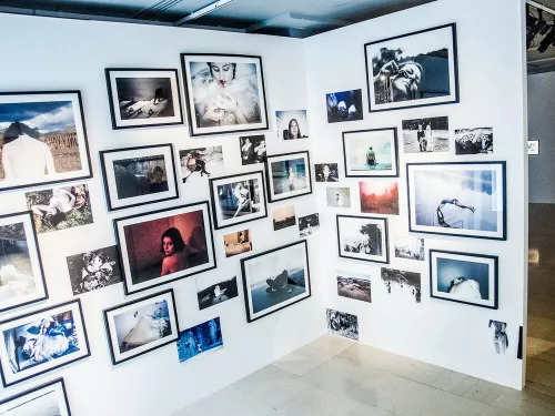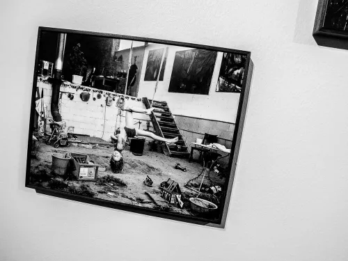 Entrare in una galleria o in un museo per vedere una mostra, fermarsi davanti a un oggetto, distrarsi e poi camminare attraverso le stanze, far scivolare il proprio sguardo da un punto a un altro incrociando gli altri visitatori, soffermarsi anche sui loro movimenti e i loro corpi che ostacolano o interagiscono con la visuale, decifrare la struttura degli spazi e i piccoli contrasti determinati dalle uscite di sicurezza e dai cartelli esplicativi. Con Ti guardo Talos Buccellati tenta di indagare con il solo mezzo fotografico gli imprevisti e le interferenze che segnano lo sguardo durante una visita a un’esposizione.