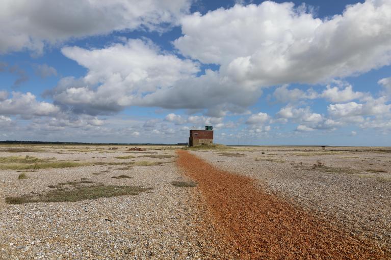 Ecco, tutto questo e molto di più avvenne concretamente a Orford Ness, una striscia di costa triangolare (“ness”) separata dalla terraferma dal fiume Alde, nel Suffolk. Oggi Orford Ness è diventato un vasto “paradiso naturale”. Di accesso complicato e visitato da poche persone alla volta, il lembo mortifero si è trasformato in un ambiente metafisico, dove ciò che si impone è un senso assoluto di vuoto. La topografia piatta crea un orizzonte enorme con, da un lato, un suolo ricoperto da una bassa vegetazione e, dall’altro, un cielo smisurato. Il vuoto della pseudo-isola è in verità pieno di oggetti difficili da decifrare, pure per chi conoscesse la storia militare locale in dettaglio. Questo è il regno di residui di ogni tipo: ferro, pezzi di legno, baracche, elementi di cemento. Vista l’immensità del perimetro, anche gli edifici più grandi scompaiono, come se la natura avesse di fatto ripreso i suoi diritti.