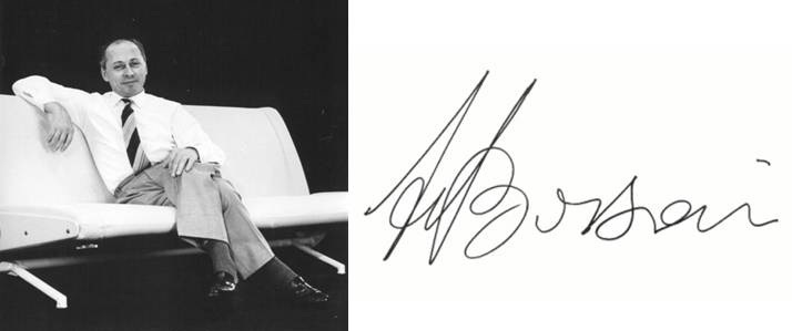 Era raro incontrare il Borsani in fabbrica a Varedo. Sempre in giro per il mondo, più facile era invece incrociarlo a Milano, nel negozio aperto nel 1955 in via Montenapoleone o magari a Colonia, alla Koelnmesse, il salone internazionale del mobile, appuntamento obbligato di tutti i mobilieri della Brianza, che andavano lì per confrontarsi con la concorrenza teutonica e, spesso, per “tirà giò ül mudell” di qualche pezzo da riprodurre in patria, modificato qua e là per non dare a vedere.