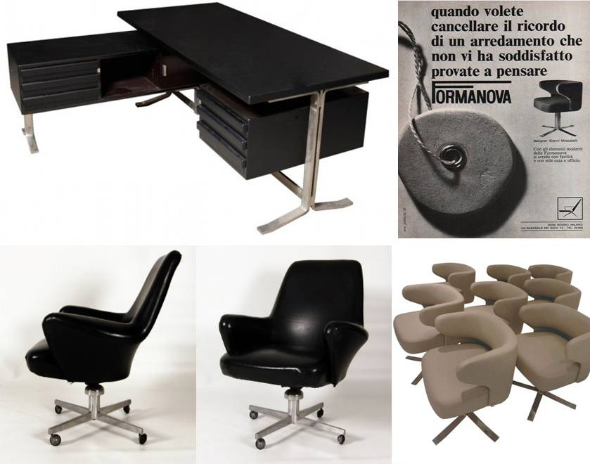 Meno colte, ma parimenti in sintonia con il gusto della loro epoca, le forme di Formanova (nomen omen) si sviluppano nell’arco di un trentennio, dagli Anni Cinquanta ai Settanta, conquistandosi un posto di tutto rispetto nella storia dell’arredo, se non addirittura in quella del design. Ne sono d’esempio la poltrona Dolly, disegnata nel 1960 e la poltroncina Poney, del 1970, che hanno mantenuto intatta nel tempo originalità e charme, così come di un raffinato gusto retrò sono i suoi mobili per ufficio in legno di noce o in pregiato Palissandro Rio, un’essenza divenuta introvabile perché da anni giustamente protetta dalle leggi di tutela.