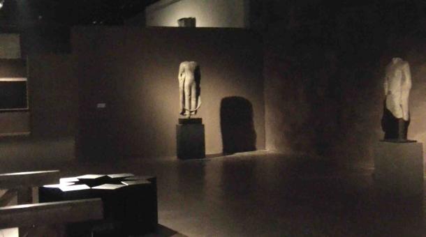 I quattro piani dell’edificio sono spazi tra loro indipendenti e strutturati in modo molto diverso. Il primo piano è una cripta ieratica, tagliata dalla lineare severità del buio e illuminata, a tratti, da intensi bagliori. Accanto a manufatti dell’arte millenaria dell’estremo oriente sono esposte senza stacco e senza contrasto le più recenti opere della contemporaneità, Red hand, green hand di Michael Borremans, un dipinto del 2010, si fonde con antiche statue indù senza braccia.