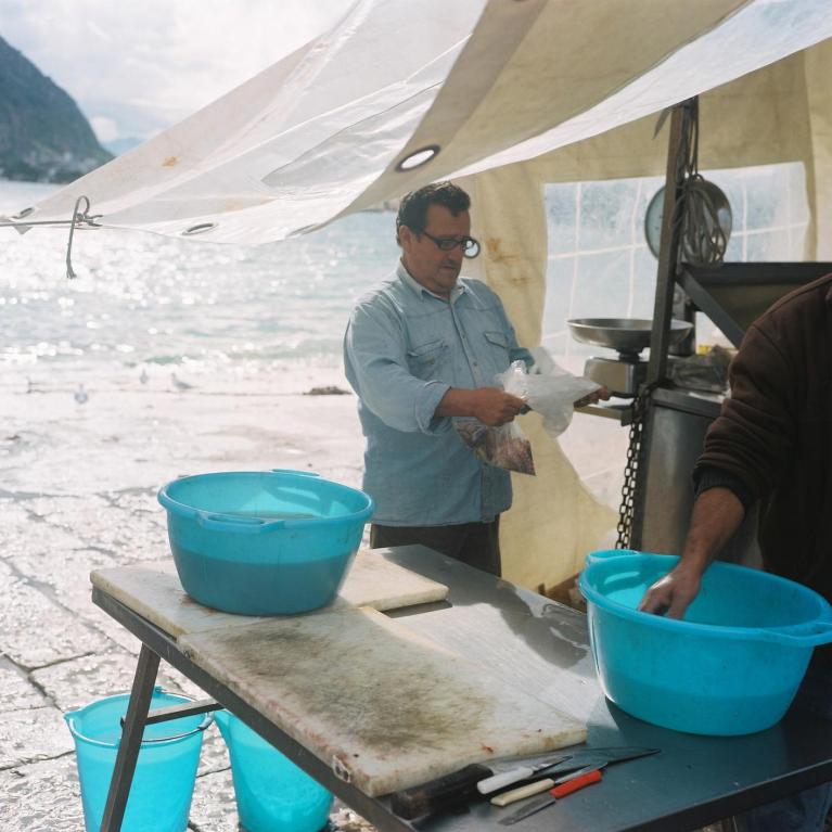 Venditori di pesce a Mondello. Palermo, Italia. 2009.