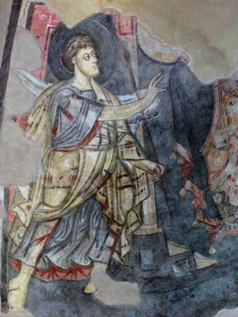 Benevento, chiesa di Santa Sofia, lacerto d’affresco dell’abside sinistro, il Silenzio di Zaccaria