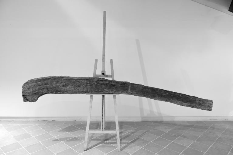 In C’era una volta (1968), una tavola grezza di ciliegio dal profilo irregolare, presentata in orizzontale su un cavalletto da pittore, questa indicazione è ancora più esplicita: la consistenza organica della pianta viene “trasfigurata”, per riprendere l’osservazione di Saverio Verini, e l’iscrizione del titolo sul legno stabilisce l’implicita equiparazione tra la superficie di legno e una “pagina” sempre già scritta dall’esistenza dell’albero e ora come liberata dall’operazione dell’artista. In una installazione dallo stesso titolo realizzata appositamente per la mostra, dieci grandi tavole di quercia erette nel giardino all’italiana del palazzo Vitelli, Icaro traduce in legno il motivo della stele, praticato sin dagli anni Ottanta, ma privato del travaglio manuale, della instabilità e della fragilità caratteristiche delle opere in gesso. Qui una verticalità “ieratica, assertiva, misteriosa”, come scrive Davide Ferri in catalogo, incontra la dimensione più riposta e sfuggente della fiaba naturale che affiora nello spessore del legno.