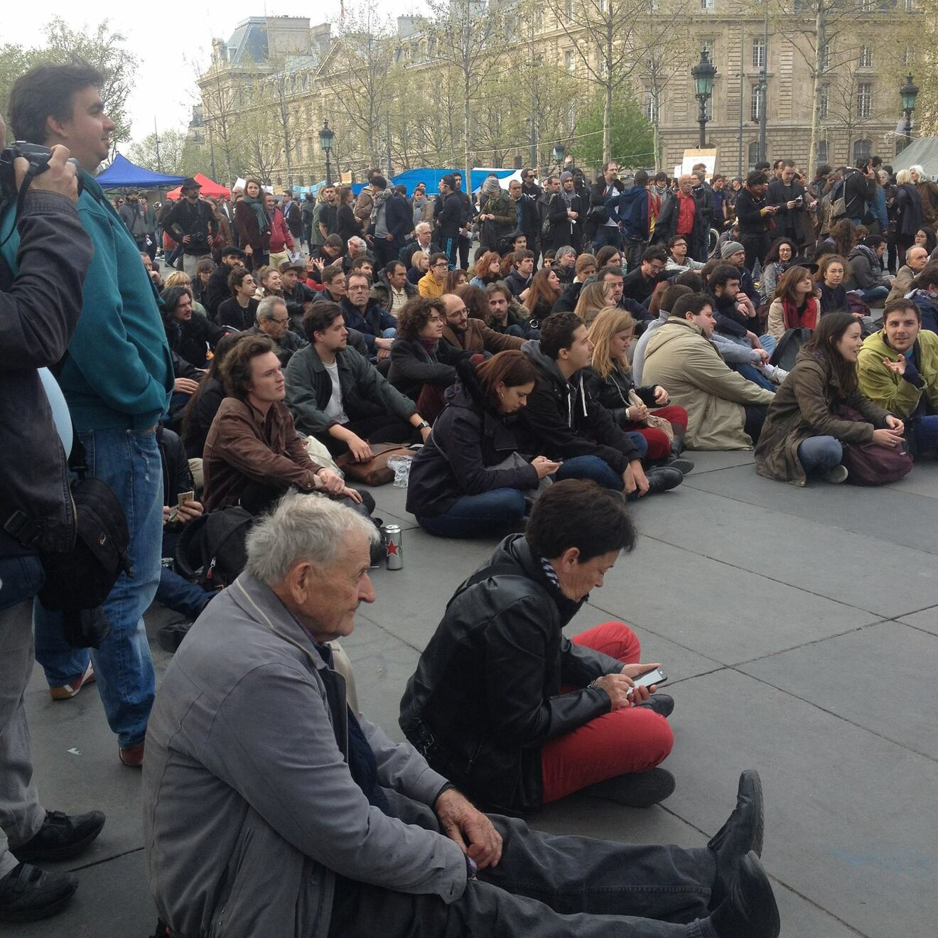 Sono tornata a Parigi il #38marzo, il calendario era cambiato e Place de la République occupata da 7 giorni. Il 31 marzo, una parte dei manifestanti contro la Loi El Khomri o Loi Travail (progetto di legge che smantella i diritti dei lavoratori a beneficio delle imprese) avevano deciso che «après la manif, on ne rentre pas chez nous» (dopo la manifestazione non torneremo a casa). In un avvicendarsi di quotidiane occupazioni serali e simmetrici sgombri notturni, assemblee generali con inizio alle 18:00 e un numero crescente di partecipanti – ormai due o tre migliaia ogni sera –, in un moltiplicarsi dei raduni in altre città di Francia, nasceva la Nuit Debout. Al di là della miccia costituita dalla Loi Travail, il movimento è fratello gemello di quello del 15M, degli Indignados spagnoli di cinque anni fa. Ma poiché anche di quello all’estero se n’è saputo poco o niente, proverò a raccontare questo.