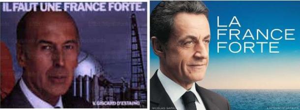 Se da un lato si pone come un abile comunicatore in grado di utilizzare Twitter, con cui ha ufficialmente aperto la sua campagna, o Facebook, su cui ha riscritto la propria biografia aggiungendo film e letture che gli diano maggiore autorevolezza e togliendo le due mogli precedenti a Carla Bruni, dall’altro ha scelto uno slogan, La France forte, che ha un sapore un po’ datato e molto, troppo a destra. Pour une France plus forte è stato infatti lo slogan con cui la repubblica collaborazionista di Vichy proponeva ai francesi di andare a lavorare in Germania; Il faut une France forte è stato il messaggio che ha accompagnato nel 1981 Valéry Giscard d’Estaing fuori dall’uscio dell’Eliseo in favore di François Mitterrand.
