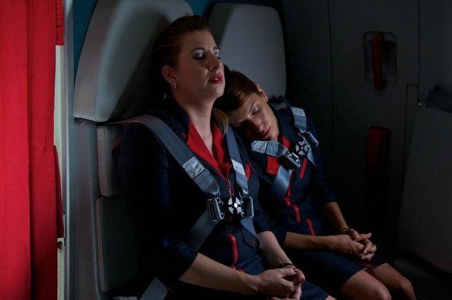 Il sospetto che viene, quindi, è che il regista stia dipingendo un quadro sconsolante sull’involuzione, ormai del tutto compiuta, della “classe padrona”. Ritratto cui la Spagna si presta perfettamente del resto, essendo la nazione che più di ogni altra in Europa ha visto la propria ascesa e il proprio declino consumarsi tanto in fretta da confondersi quasi l’una nell’altro. E andrebbe letto in questo senso l’accentuato côté anni Ottanta di cui la pellicola è rivestita: gli arredi dell’aereo, gli abiti degli steward e, ovviamente, l’intermezzo danzato sulle note di I’m So Excited delle Pointer Sisters. Non si tratta soltanto, per Almodóvar, di tornare, anche visivamente, a fare il cinema che faceva quasi trent’anni fa, quanto più di voler mostrare, attraverso le modalità enunciative che gli sono consone, un ribaltamento di prospettiva enorme. Ci mostra come del vitalismo di quegli anni, dell’edonismo camp postfranchista (esattamente agli antipodi, allora, di quello reaganiano e thatcheriano), della rivoluzione sessuale e dei costumi e dell’esplosione della queer culture, sia rimasto ben poco, nonostante l’Europa, nonostante il miracolo economico e nonostante Zapatero. No, oggi il popolino che viaggia in seconda classe dorme, mentre una casta borghese senza qualità si stordisce di droga, alcol e sesso interpretando l’eredità degli anni Ottanta dell’emancipazione e della speranza, in una maniera profondamente reazionaria. Una situazione di cui la Spagna, come si diceva, non è solo il modello negativo di più facile individuazione, ma anche, sembra dirci Almodóvar, lo specchio in cui tutta l’Europa rischia di vedersi riflessa.