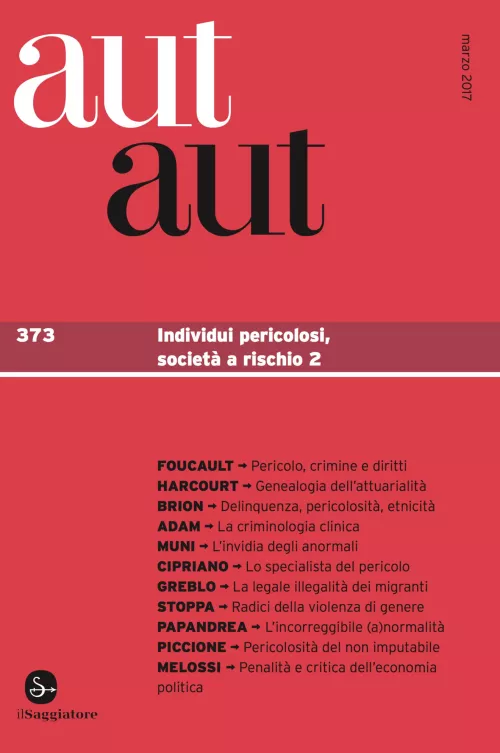 Questo fascicolo prosegue l’indagine sulla pericolosità avviata nel n. 370, mantenendone il titolo e ampliando i diversi percorsi collegati o collegabili a una questione che riteniamo attuale e decisiva. Il passaggio dall’individuo pericoloso alla società a rischio viene inizialmente sviluppato attraverso alcuni materiali: un’inedita conversazione che Michel Foucault tenne negli Stati Uniti nel 1983, la ricostruzione di Bernard Harcourt di come si è imposto il concetto di analisi attuariale e due interventi della scuola belga di criminologia a firma di Fabienne Brion e Christophe Adam. Ma il fascicolo apre anche una serie di altri fronti che vanno dal terreno giuridico e dal problema del carcere all’emergenza sociale e politica del “pericolo” immigrati, oggi molto dibattuto in Italia e in Europa, a quella della violenza sulle donne, indagata dalla prospettiva della psicoanalisi. Siamo una rivista che cerca di mettere alla prova ogni volta il pensiero critico: l’allargamento della questione a partire dal nodo storico e teorico della pratica psichiatrica si accompagna di conseguenza a un tentativo di approfondire ulteriormente il tema della pericolosità. La questione della pericolosità non va sfumando in quella del calcolo del rischio, all’opposto sembra intensificarsi come domanda teorica, certo non semplice, che dobbiamo continuare a rivolgere a noi stessi, dovunque operiamo: tale domanda dovrebbe mettere in gioco radicalmente le nozioni di normalità e anormalità, la loro tenuta e i loro confini, dato che non possiamo pensare di disfarci davvero delle categorie di pericolo e di pericolosità senza indagare gli effetti che esse hanno sulla nostra stessa idea di soggetto, cioè i pregiudizi e le relative forme di violenza che impugniamo quotidianamente contro le persone deboli e che tali pregiudizi continuano a innervare. Tutti quanti noi operiamo all’interno di una cultura asfittica nella quale dobbiamo immettere ossigeno critico, cioè, in breve, interrogarla. Questo fascicolo vorrebbe allora suggerire che il tema del pericolo, individuale e sociale, ha necessariamente un rimbalzo su quell’idea di “soggetto normale” che molto spesso consideriamo un’acquisizione comune e tranquillizzante.