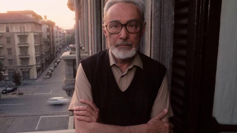È il 1985, eppure sembra un’immagine contemporanea scattata con uno smartphone. Siamo sul balcone di casa Levi in corso Re Umberto 75, a un piano alto, in un tardo pomeriggio qualsiasi. Lo scrittore sta appoggiato con la schiena al lato corto del bancone, a braccia conserte, con il corso alle spalle. E sopra di lui c’è un cielo bianco, dove la luce ha bruciato i profili delle case, vagamente arancioni per effetto dell’esposizione. Levi indossa una polo beige e un pullover senza maniche.
