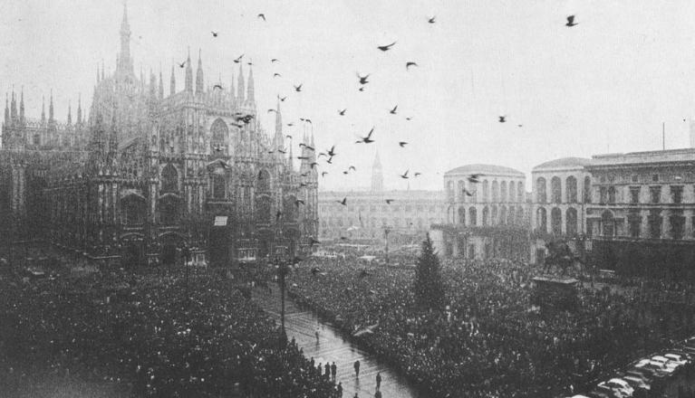 In certi momenti il silenzio, nella piazza, toglie il respiro. Vale più di qualsiasi parola nel condannare la violenza efferata della strage. Nell’aria si avverte, quasi in modo palpabile, l’angoscia che sovrasta tutti per un momento tra i più drammatici che la giovane Repubblica, sorta vent’anni prima, abbia mai affrontato. All’ingresso del Duomo campeggia un cartello «Milano si inchina alle vittime innocenti e prega pace».