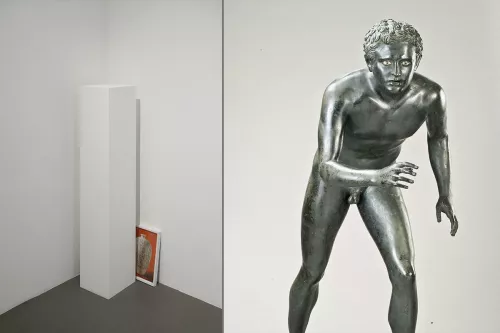 Nel film Chimera di Haris Epaminonda, artista premiata con il Leone d’Argento alla 58. Esposizione Internazionale d’Arte di Venezia, ritroviamo la luce di Plotino concentrata sulla verticale di un edificio in acciaio e vetro californiano, la stessa luce che in un’altra sequenza del film balena negli occhi dei due corridori o lottatori in bronzo, copie di statue greche della fine del IV o dell’inizio del III sec. a.C. (anche questi bronzi provengono da Villa dei Papiri), mentre tendono i loro muscoli preparandosi a uno scatto.