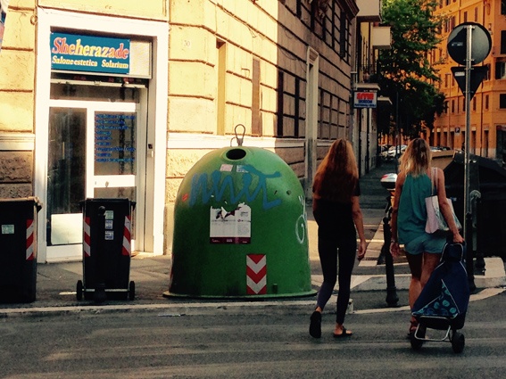 Quando esco dalla libreria, lo sbalzo di temperatura tra dentro e fuori è paralizzante. Viale Giulio Cesare è appiattito dal sole. Punto lo sguardo in direzione di via Ottaviano, la calura trasforma lo sciame di turisti diretti al colonnato del Bernini in una sostanza molliccia e pulsatile. Per una sorta di istinto sociale, forse perché cerco un riparo dalla solitudine, mi avvio anch’io nella stessa direzione. Il marciapiede di sinistra è invaso da un brulichio di passanti, quello di destra è deserto. A spartire la strada così nettamente è il fatto che da una parte c’è l’ombra, mentre dall’altra è sole pieno. Ogni tre passi c’è qualcuno che offre servizi ai turisti. C’è una ragazza coi capelli biondo platino che mi ricorda vagamente Pris, la replicante di Blade Runner, che declama ad alta voce: “Español, english, deutsch, français…”. Un tizio la supera a passo veloce: “Se non parli romano nun te capiscono”.