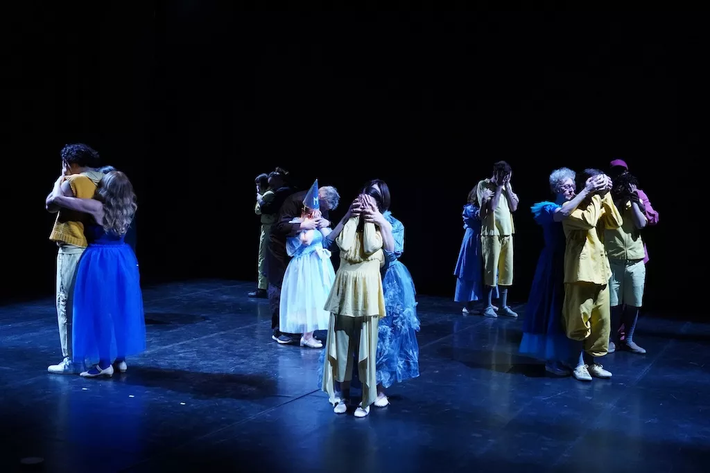 Ho lasciato per ultimo un altro lavoro corale, entusiasmante, Pinocchio – Che cosa è una persona, una creazione di Davide Iodice, grande artista negli ultimi anni appartatosi e ingiustamente alquanto dimenticato, che con le napoletane Scuola elementare del teatro e il Conservatorio popolare per le arti della scena, accosta madri, padri e figli ‘diversi’, attori e attrici e ragazzi portatori di fragilità, creando una sinfonia fisica e di confessioni, di danze e girotondi, di scene immaginose, che toglie le etichette di down, autistico, Wiliams, e, con nasi lunghi finti, maschere di conigli, fatine turchine dai corpi e dalle facce normali o oversize, grilli parlanti che portano la croce, ciuchini, rivela la favola come grande modello di possibilità, di meraviglia, di confusione dei ruoli e di uguaglianza, di affettività. Gli attori qui non si esibiscono, ma si accompagnano, si ascoltano, si accarezzano, si sostengono Un’emozione che toglie il respiro e decreta, almeno questa volta, il trionfo del teatro ‘popolare’ sui rovelli e le destrutturazioni del ‘contemporaneo’.