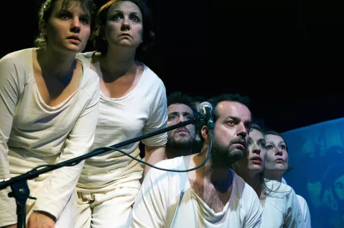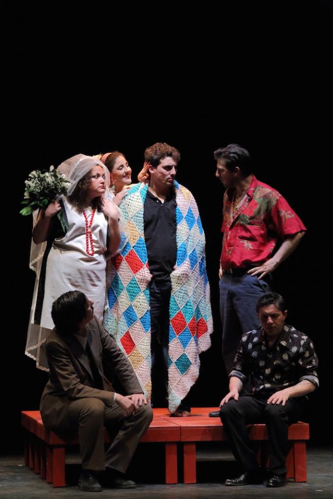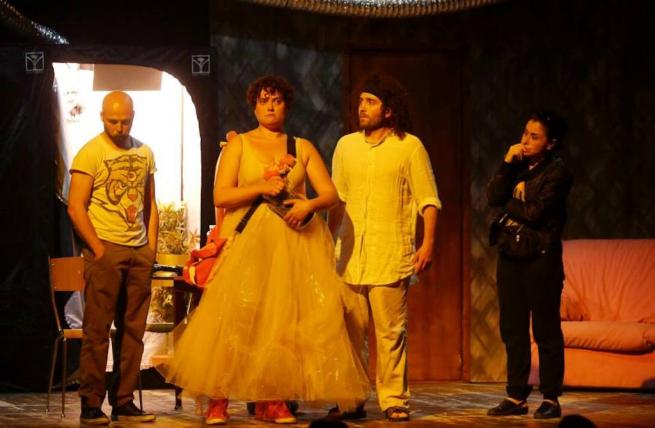 Ancora la famiglia in un testo non comico ma con qualche propensione al grottesco di Mauro Santopietro, inscenato da Scena Nuda di Reggio Calabria,Padre e figlio sottospirito (il festival ospita sempre forze regionali): qui, ancora di più, ci si perde in traumi e complessi con esiti frammentari e bozzettistici.