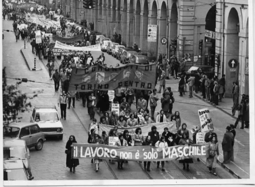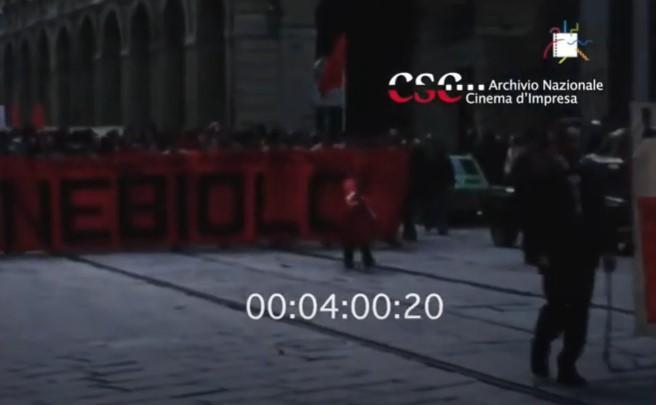 C’è una sorta di disordine organizzato nel corteo, molto italiano. Nessuna rigidità militaresca da piazza Rossa, e nemmeno la solennità ingessata di una sfilata religiosa. È uno sciamare umano sereno e vivace, dove c’è spazio per tutti. Lo spezzone del consiglio di fabbrica della Nebiolo, per esempio, è preceduto da un bambino che avrà 4-5 anni. Avanza tutto solo portando una bandiera rossa più grande di lui, e un’altra bandiera che arriva fino a terra gli cinge il collo, come uno strascico da sposa. E se nella prima parte del filmato donne quasi non se ne vedono, seminando il sospetto che siano state lasciate a casa a far da mangiare, poi arrivano e prendono la scena. Prima mescolate a compagni di lavoro e mariti, poi in massa dietro lo striscione dell’Unione Donne Italiane. Sì, è vero, ci sono anche un paio di majorette dietro il gonfalone di qualche comune, ma sono un dettaglio folcloristico. Fuori da ogni possibile nostalgia, l’impressione è quella di una forza tranquilla, consapevole, convinta. In una parola: il popolo, prima che diventasse massa e poi “gente”.
